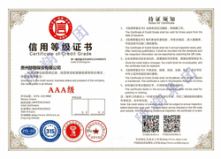 信用等級(jí)證書(shū)AAA級(jí)