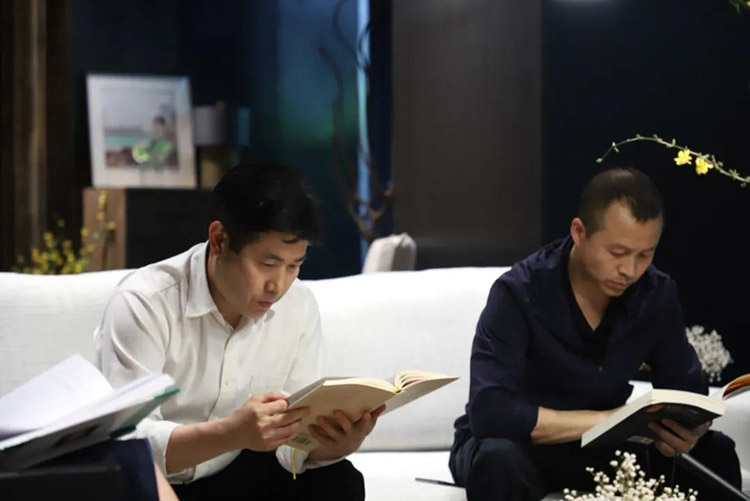 (集團(tuán)員工在會客廳閱讀書籍)