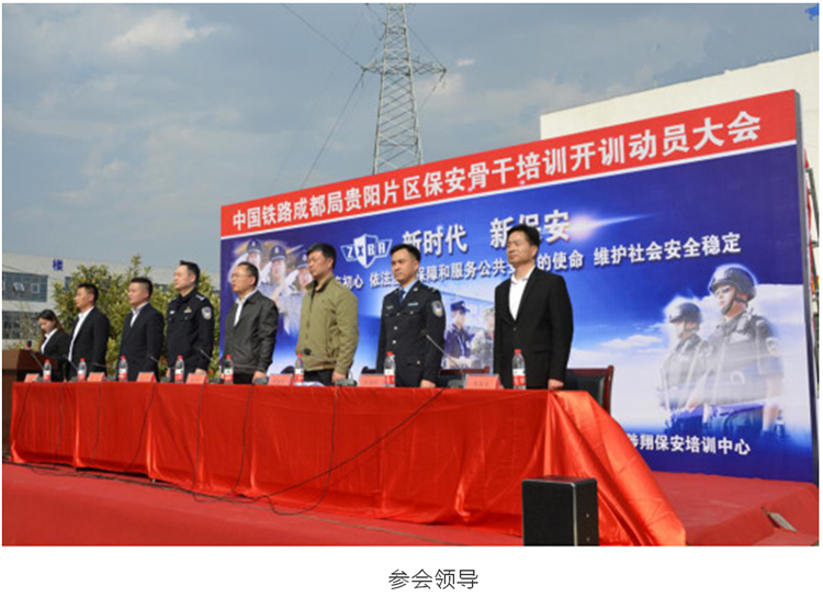 參會(huì)領(lǐng)導(dǎo)也分別對(duì)此次培訓(xùn)提要求、作指示。貴州省鐵路護(hù)路辦周玉春主任:鐵路成都局集團(tuán)公司非常重視鐵路安保工作,今年在營(yíng)運(yùn)成本居高不下的情況下還提高了保安員工資福利待遇,希望參訓(xùn)保安員們要提高思想認(rèn)識(shí),加強(qiáng)學(xué)習(xí),珍惜機(jī)會(huì),不斷提升業(yè)務(wù)水平,維護(hù)好鐵路公共安全,在工作中履職盡責(zé),擔(dān)當(dāng)有為。貴州省公安廳治安總隊(duì)二處楊春暉處長(zhǎng):從近幾年我國(guó)公共安全事件案例,尤其是公眾場(chǎng)所治安、暴力恐怖襲擊等方面深入淺出地分析了當(dāng)前公共安保工作的形勢(shì)。指出鐵路保安作為專(zhuān)業(yè)化的鐵路治安防范組織和公安機(jī)關(guān)的一支重要輔助力量,在保障鐵路安全、維護(hù)治安秩序、預(yù)防和制止違法犯罪活動(dòng)、樹(shù)立中國(guó)鐵路形象等方面發(fā)揮了非常重要的作用。楊處要求參訓(xùn)的保安隊(duì)員們?cè)谂嘤?xùn)過(guò)程中要尊重教員,遵守培訓(xùn)中心的管理規(guī)定,克服各種困難,積極認(rèn)真搞好培訓(xùn),學(xué)精應(yīng)知應(yīng)會(huì)知識(shí),練就過(guò)硬專(zhuān)業(yè)技能,在今后的工作中能學(xué)以致用。貴陽(yáng)鐵路公安處保安支隊(duì)胡宏明副支隊(duì)長(zhǎng):首先肯定了貴州陟翔保安培訓(xùn)中心的辦學(xué)能力,對(duì)參訓(xùn)的保安員精神振作、姿態(tài)端正、作風(fēng)嚴(yán)謹(jǐn)、紀(jì)律嚴(yán)明提出表?yè)P(yáng),要求各位參訓(xùn)人員要認(rèn)清當(dāng)前鐵路安保工作形勢(shì),端正學(xué)習(xí)態(tài)度,珍惜此次培訓(xùn)機(jī)會(huì),自覺(jué)遵章守紀(jì),克服各種困難,扎實(shí)練好本領(lǐng),力爭(zhēng)取得好的培訓(xùn)效果。
